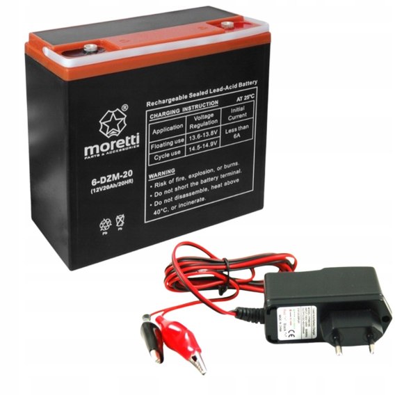 Akumulator Moretti 6-DZM-20 12V Martinelli + ŁADOWARKA 12V