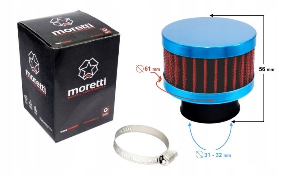 • FILTR POWIETRZA STOŻKOWY NIEBIESKI, ŚREDNICA 31 MM Martinelli