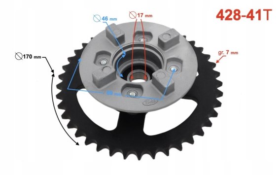 Średnica otworu centrującego- 54mm Rozstaw śrub- 70mm Typ zębatki- 41 zębów