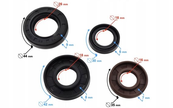 Zestaw uszczelniaczy silnika do skuter 2T. Rozmiary A. 20x42x8 B.20x30x6 C.17x35x7 D.25x44x7