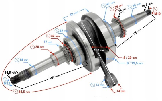 WAŁ KORBOWY DO SKUTERA 4T 50-80 CC