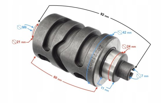 Wybierak skrzyni biegów do motocykla Barton Blade 125,; długość wybieraka: 92 mm; średnica wybieraka (w najgrubszym miejscu): 42 mm;